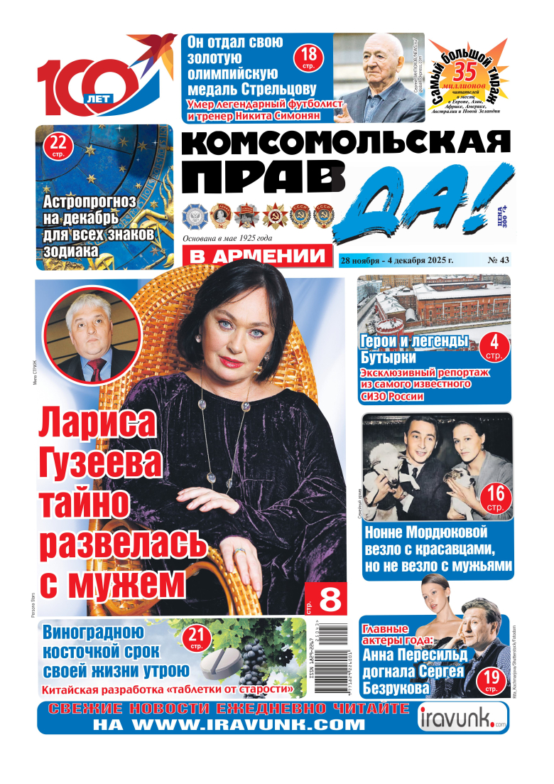 Новый выпуск еженедельника «Комсомольская правда в Армении» - в продаже с 28 ноября!