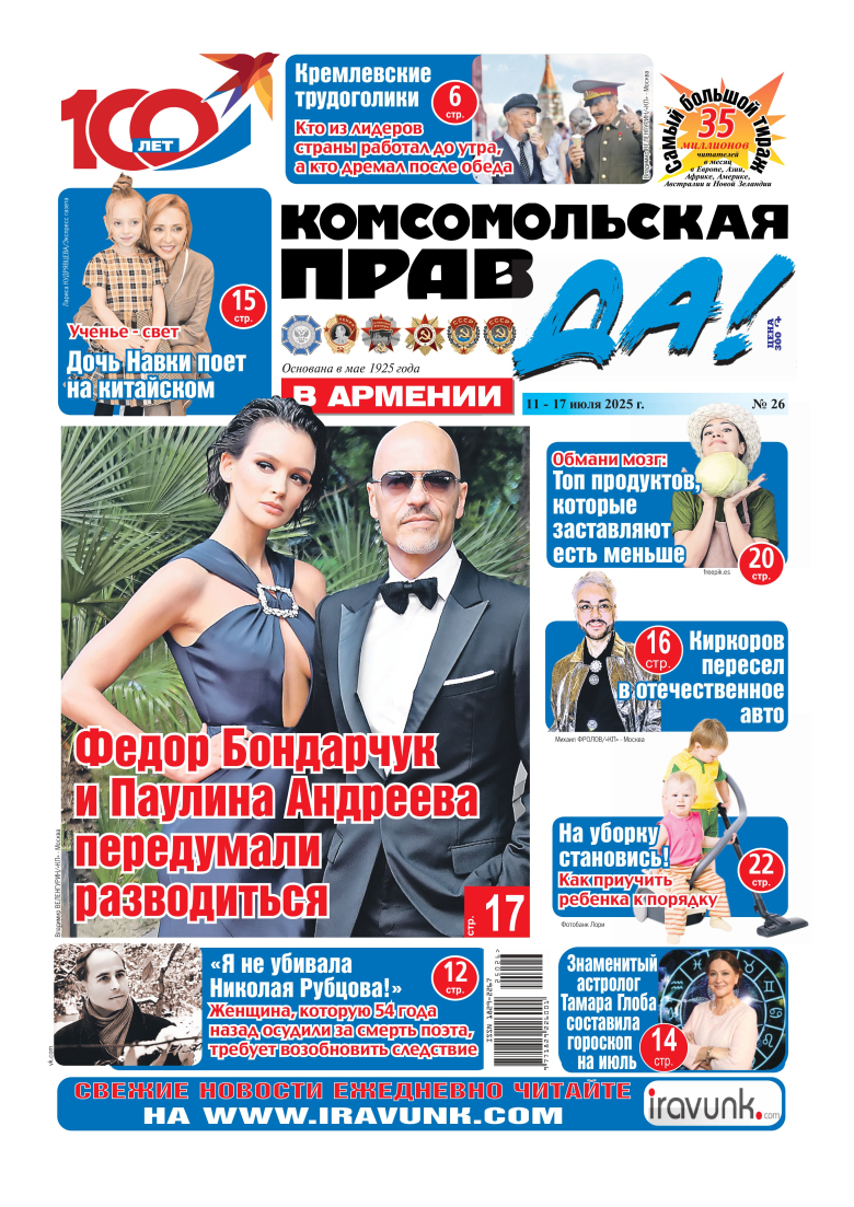Газета “Комсомольская правда”Новый выпуск еженедельной газеты «Комсомольская правда в Армении» от 11 июля!