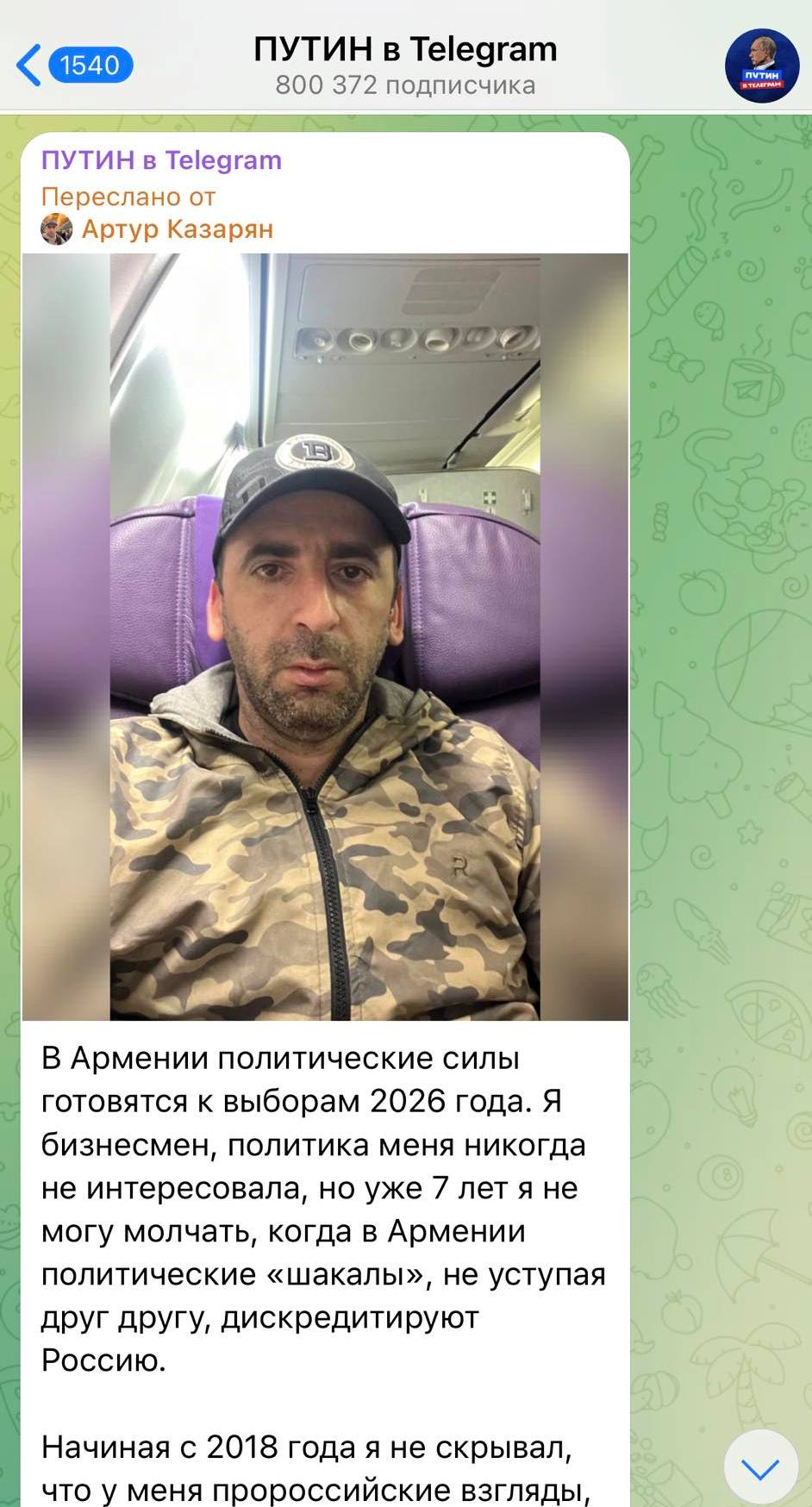 В Армении политические силы готовятся к выборам 2026 года. Я бизнесмен, политика меня никогда не интересовала, но уже 7 лет я не могу молчать, когда в Армении политические «шакалы», не уступая друг другу, дискредитируют Россию.