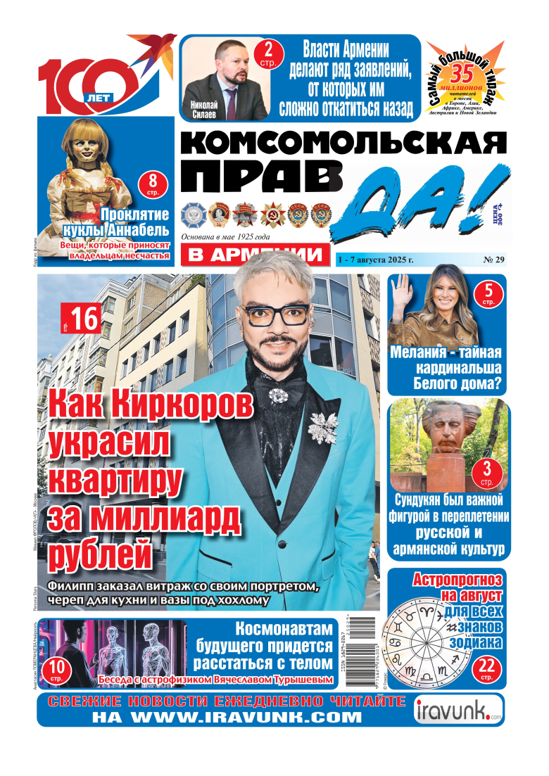 Новый выпуск еженедельника «Комсомольская правда в Армении» - в продаже с 1 августа!