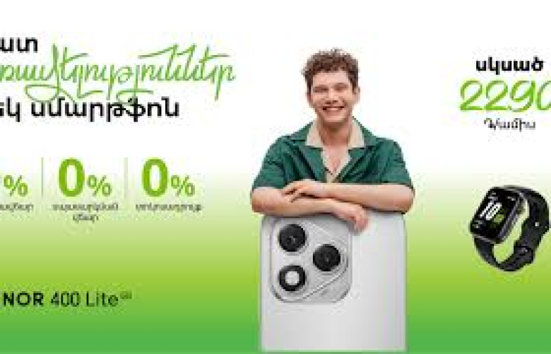 Только в Ucom, в рамках специального предложения, покупатели смартфона HONOR 400 Lite 5G получат фирменные умные часы HONOR Choice 2i, а также 2 месяца бесплатного обслуживания с красивым номером на тарифном плане Level Up+ 3000, всего за 2290 драмов в месяц. Смартфон доступен как за наличные по цене 109 900 драмов, так и в рассрочку на специальных условиях — 0% первоначального взноса, 0% комиссии за обслуживание и 0% годовой ставки в течение первых 8 месяцев.