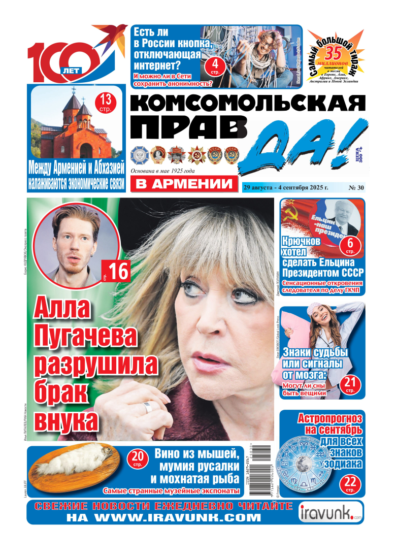 Газета “Комсомольская правда”Новый выпуск еженедельной газеты «Комсомольская правда в Армении» от 29 августа!