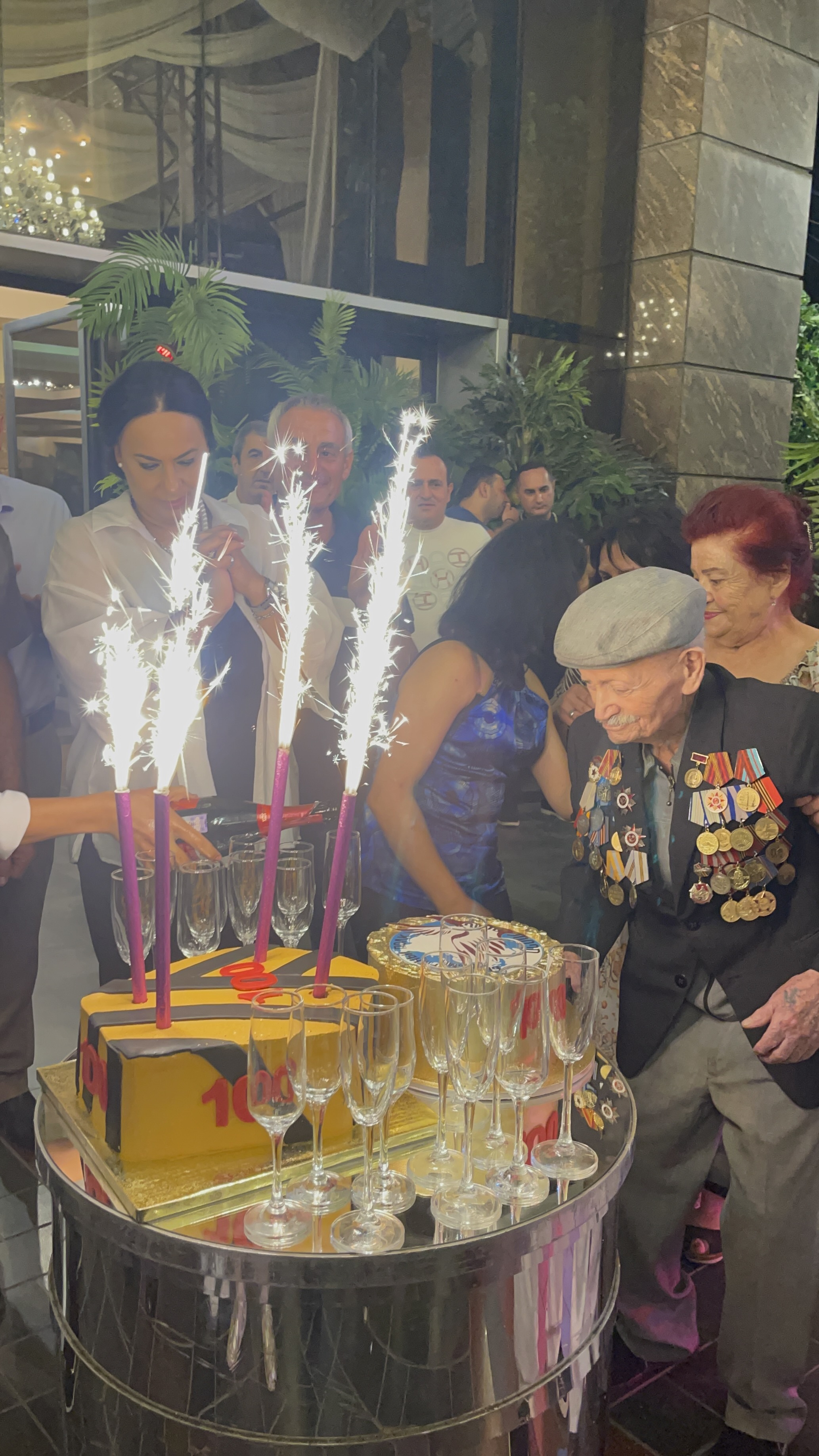 Праздник завершился трогательным моментом — торжественным выносом большого юбилейного торта с яркой цифрой «100». Под аплодисменты Лачин Вагаршакович задувал свечи, как это делают дети — с той же искренней верой в чудо.