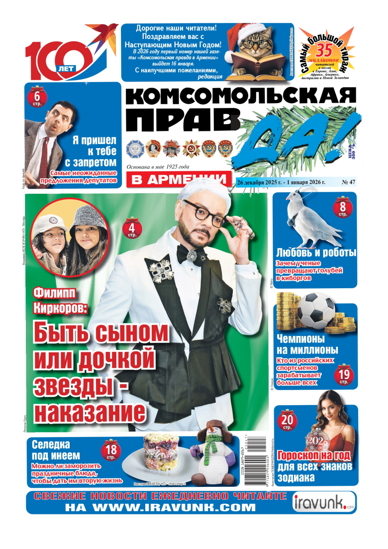 Газета “Комсомольская правда”Новый выпуск еженедельной газеты «Комсомольская правда в Армении» от 26 декабря!