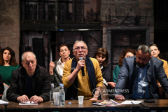 Ինձ համար անհասկանալի է` ինչպե՞ս կարելի է մտածել թատրոնը քանդելու մասին. Հակոբ Ղ... Գոյապայքար` մասնագիտական տոնին Որպեսզի հայը չխեղճանա, պետք է մտածել ազգատիրության մասին. Հակոբ Այնթապլյան Ովքեր են «Արտավազդ-2023» մրցանակաբաշխության հաղթողները «Բալզամինովի ամուսնությունը». առաջնախաղ` Ռուսական թատրոնի բեմում Իմ երաժշտությունը խոսում է հայերեն, պատմում հայի ցավի, գոյի, հաղթանակի մասին. Մա... Տպավորություն է՝ զոռբայավարի խլել ենք Սունդուկյան թատրոնի տնօրենի և իր ընտանիքի ... Հայազգի տենոր Լիպարիտ Ավետիսյանը ելույթ է ունեցել  Բուենոս Այրեսի աշխարհռչակ Կոլ... Ով կներկայացնի Հայաստանը «Սլավյանսկի բազար 2023»-ում Մշակույթի տունը նորոգելու փողը տալիս ենք, նայում ենք, դուռը փակում ու «գեղագիտակ... Թատրոնի 90-ամյա պատմության մասին պատմող գիրքը Երեւանից Ստեփանակերտ տեղափոխելու խ... 100-օրյա շրջափակում. Ռազմիկ Ամյանը հրապարակել է «Ղարաբաղ» երգը Չհամարձակվե՛ք «Գոյ» թատրոնին կպնել, ամո՛թ ձեզ, արա՜. Զոհրապ Բեկ-Գասպարենց ԵԹԿՊ-ն վերացնելու «օպերացիան» մեկնարկել է. ինչու են թիրախավորել վերջին ռեկտորին Հայ հանդիսատեսի արձագանքը փազլի վերջին կտորն է, որը ցույց կտա մեր մեծ աշխատանքի ... Ինձ համար մի աշխարհ է բացվում, որտեղ ես բոլորովին ուրիշ եմ. Թամարա Գվերդծիթելի Այնքան հուզիչ է, որ պատերազմական այս խառը շրջանում արվեստը միավորեց բոլորիս. Զառ... Խուրշուդյանն այցելել է վերակենդանացման բաժանմունքում գտնվող ՀՀ վաստակավոր արտիստ... ՀՀ վաստակավոր արտիստ Լուսինե Կիրակոսյանին տեղափոխել են վերակենդանացման բաժանմուն... «Կարմիր ծաղիկ մը գարունի» երգը` նոր մատուցմամբ