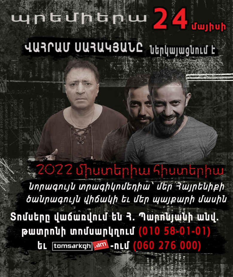– Տոմսերը պետք է ձեռք բերել նախօրոք եւ շտապ` Պարոնյանի անվան թատրոնի տոմսարկղից կամ tomsarkgh.am-ից` հավաքելով "2022 Միստերիա-հիստերիա":