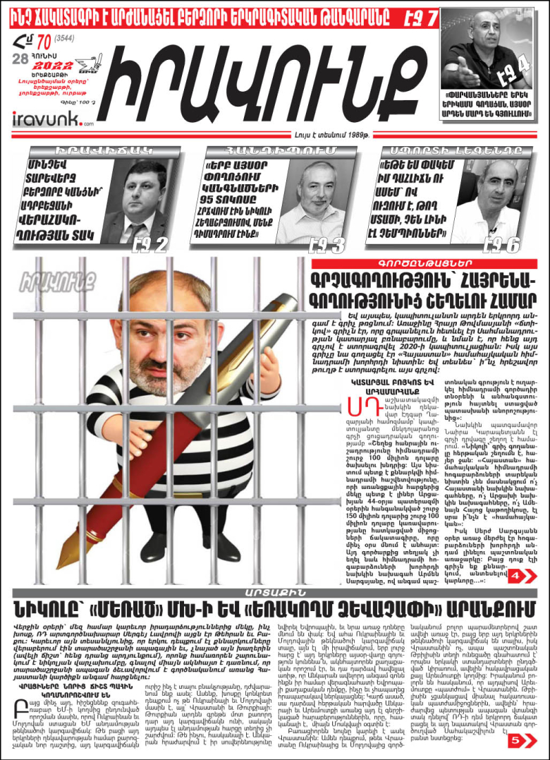 Իսկ 10 ժամ շուտ այն կարող եք կարդալ «ԻՐԱՎՈՒՆՔ»–ի տպագիր համարում: