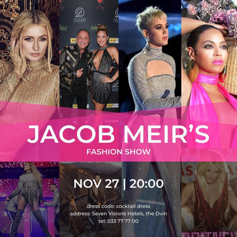 Հայ հասարակությունը նոյեմբերի 27-ին` ժամը 20։00-ին «Seven Visions Hotels, the Dvin»-ի ONE&ONLY թատրոնում հնարավորություն կունենա ծանոթանալու հագուստի` համաշխարհային հռչակ վայելող դիզայներ Ջեյկոբ Մեյերի հետ։ Նա անձամբ լինելու է Երեւանում եւ տեղի է ունենալու դիզայների երբեւէ ամենամեծ ցուցադրությունը` ներկայացնելով ավելի քան 100 նմուշ։ ⠀