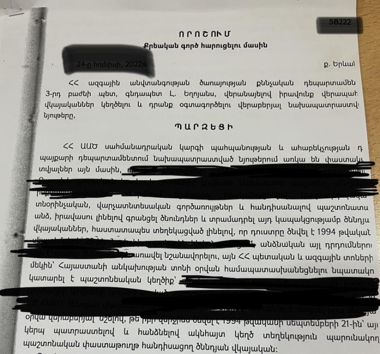 Ծննդյանս ժամերն էլ խնդրում եմ ուշադրություն դարձրեք ով է քննել ու փոխանցել ՔԿ։ ՀՀ ԱԱԾ սահմանադրական կարգի պահպանության և ահաբեկչության դեմ պայքարի դեպարտամենտում:)
