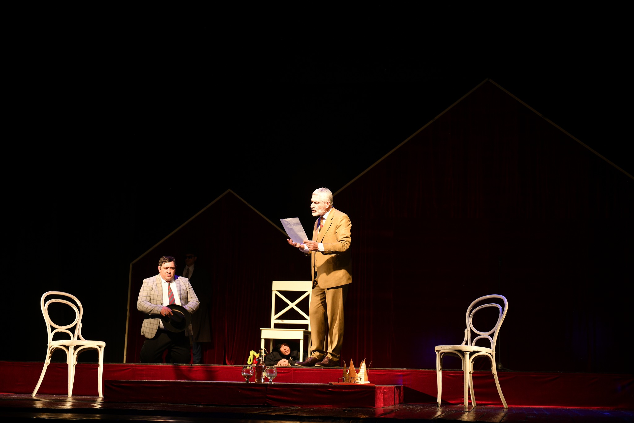 Մեկ գործողությամբ տրագիկոմեդիայում զբաղված են ՀՀ վաստ․ արտիստներ Արթուր Կարապետյանը, Սաթիկ Հախնազարյանը, դերասաններ Հայկ Մնացականյանը, Թեհմինա Աբրահամյանը, Հարութ Բադիրյանն ու Միքայել Մաշուրյանը: