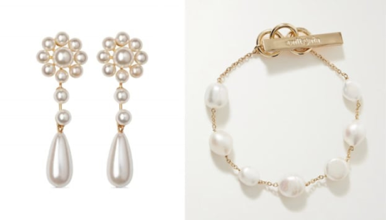Jennifer Behr ականջօղեր, Cult Gaia ապարանջան քաղցրահամ ջրի մարգարիտներով: