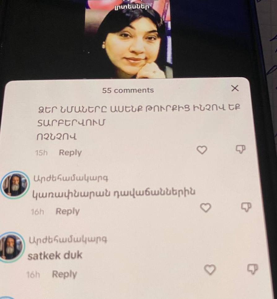 Հիշեցնենք, որ շուրջ մեկ ամիս է, ինչ այդ անառակաբարո էջերի կողմից ապօրինաբար տարածվում են հետաքննող լրագրող Գայանե Զարգարյանի լուսանկարները, զուգահեռաբար տարածելով լկտի, զրպարտիչ հերյուրանքներ ու անգամ սպառնալիքներ, հնչեցնելով ընդհուպ սպանության կոչեր՝ նպատակ ունենալով ֆիզիկական հաշվեհարդարի ֆրոնտ բացել մեր գործընկերոջ նկատմամբ: