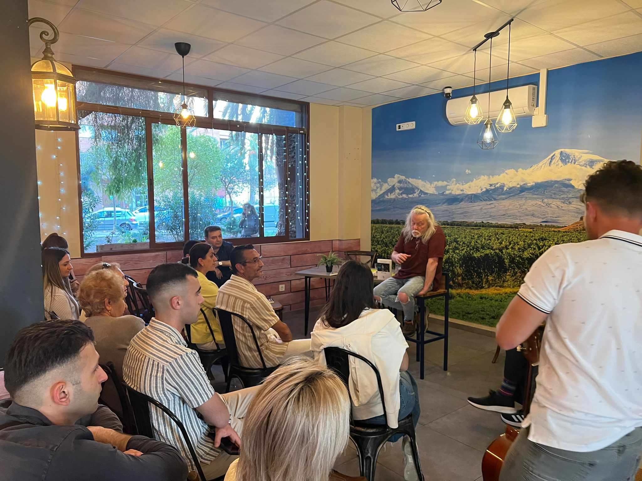Իսկ ահա ամենավերջում, տաղանդաշատ երգիչ Էդգար Աբրահամյանը իսպաներեն և հայերեն երկու գեղեցիկ կատարումներով համեմեց միջոցառումը, որն ավարտվեց սրճարանի հյուրընկալ տերերի կողմից փոքրիկ հյուրասիրությամբ, գինու գավաթի շուրջ և առաջիկայում նորից հանդիպելու ակնկալիքով։