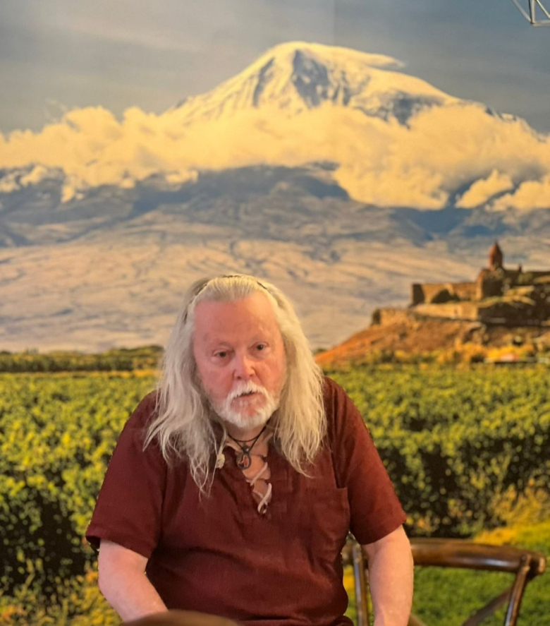 Վերջինիս հետ հանդիպումը հնարավոր դարձավ "Արարատ" հայկական միության Երիտասարդության և Սպորտի հարցերով պատասխանատու Մխիթար Խուրշուդյանի շնորհիվ, ում հետ գրողը բազմիցս հանդիպել է կազմակերպության անդամ Վարդան Գալոյանի սրճարանում։ Հենց այս հյուրընկալ սրճարանում էլ, պատի ողջ երկայնքով ու լայնությամբ պատկերված Արարատի "լանջերին" տեղի ունեցավ հանդիպումը։