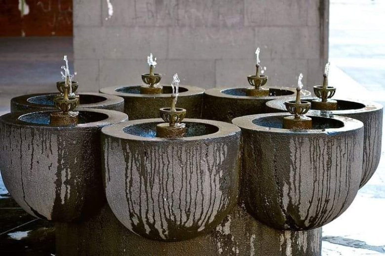 Եթե կանգում եք ցայտաղբյուրի առջեւ, տառեր եք տեսնում` ներսի կողմից գրված է «Ուշ լինի», դրսի կողմից` «Նուշ լինի։