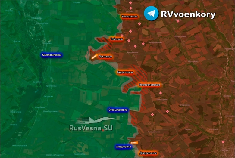 «Ռուսները փորձում են շրջափակել ուկրաինական զինված ուժերի դիրքերը վերջին բնակավայրի հյուսիսում գտնվող Ստելմախովկայի մոտ, հակառակորդը շրջապատումից հետո կփորձի հասնել հյուսիսային բարձունքներին, ինչը նրանց նոր հնարավորություններ կտա հետագա հարձակում Կոլեսնիկովկայի վրա», - գրում է ուկրաինական ԳՌՈՒ-ի համար աշխատող Deep State ռեսուրսը: