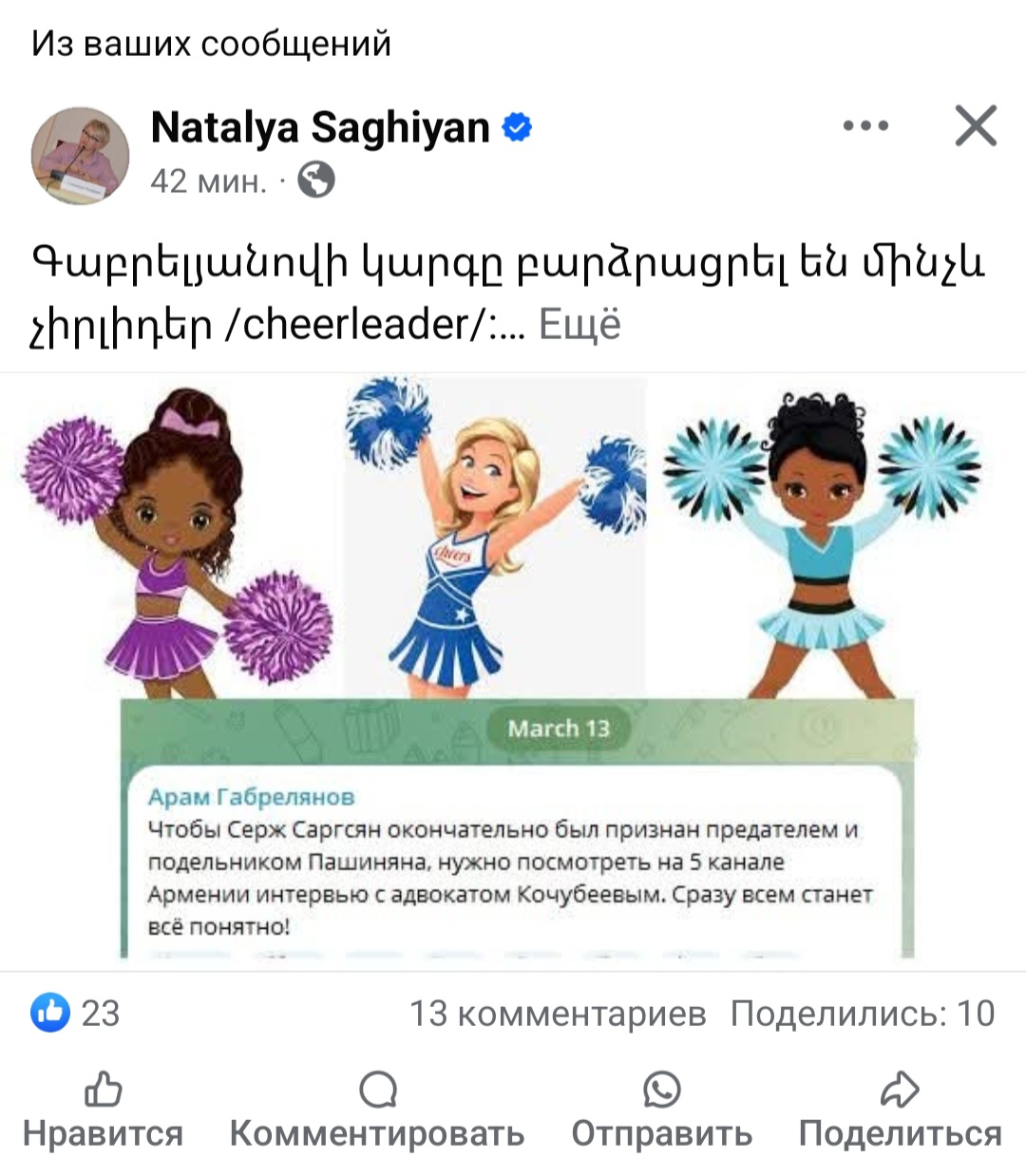 ՆերքաղաքականԳաբրելյանովի կարգը բարձրացրել են մինչև չիրլիդեր /cheerleader/: