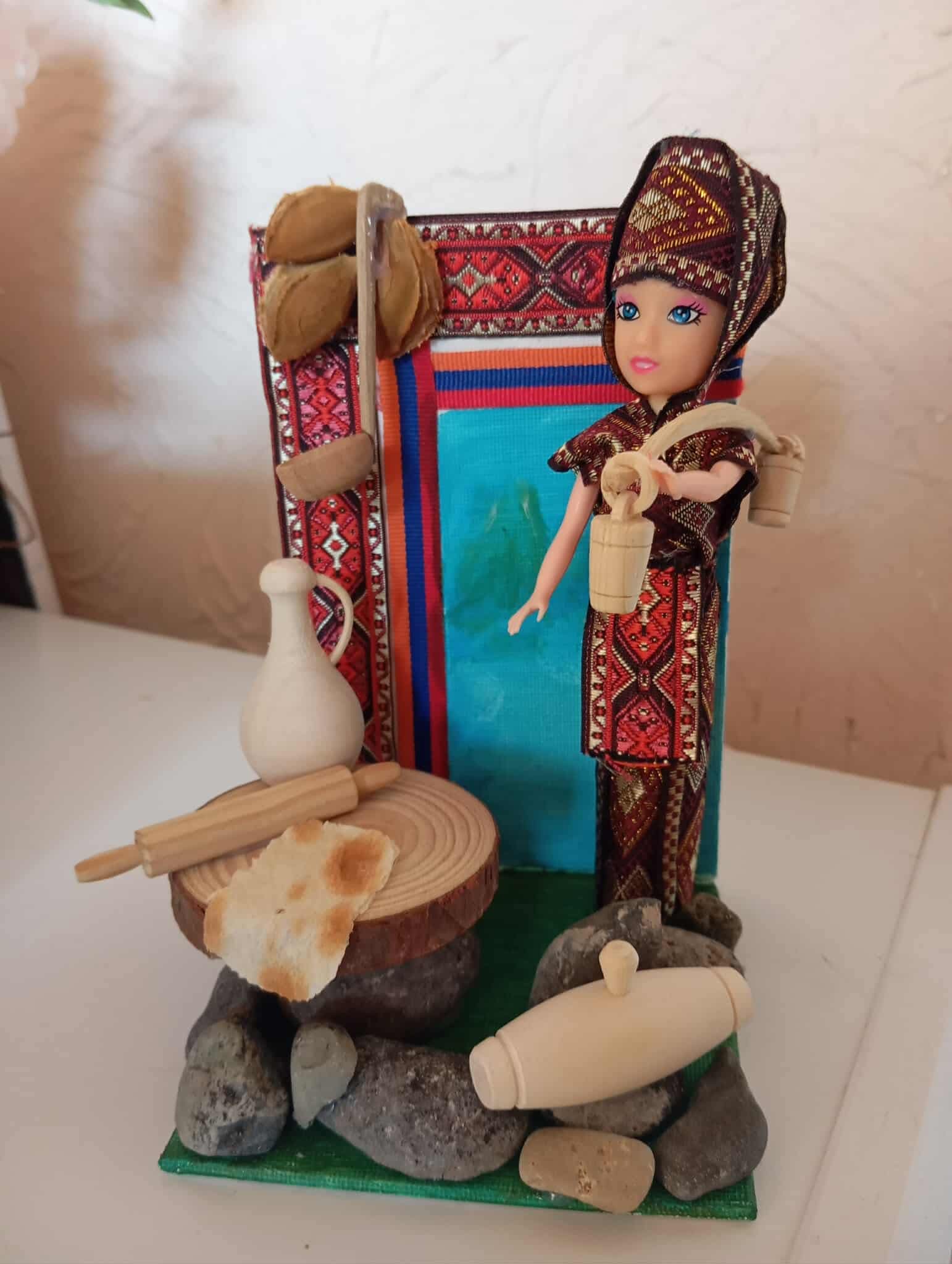 «Ինձ հետ բերել եմ հայկական ավանդական կահ - կարասի, կավե կճուճներ, որոնց մեջ պանիր ենք հորում, /հիմա ցավոք քչերն են անում /, փայտե գդալներ, շերեփներ, թոնրի լավաշ թխելու պարագաներ, կարպետներ, ջրամաններ, տաշտեր, արիշտայի պարագաներ, ցորեն, ձավար ծեծելու երկանք։ Ներկայացնում ենք հին իրեր, որոնցից շատերը մեր օրերում հայտնվել են մոռացության եզրին։ Ցուցադրում ենք, որ նոր սերունդը ևս իմանա, կիրառի կենցաղում։