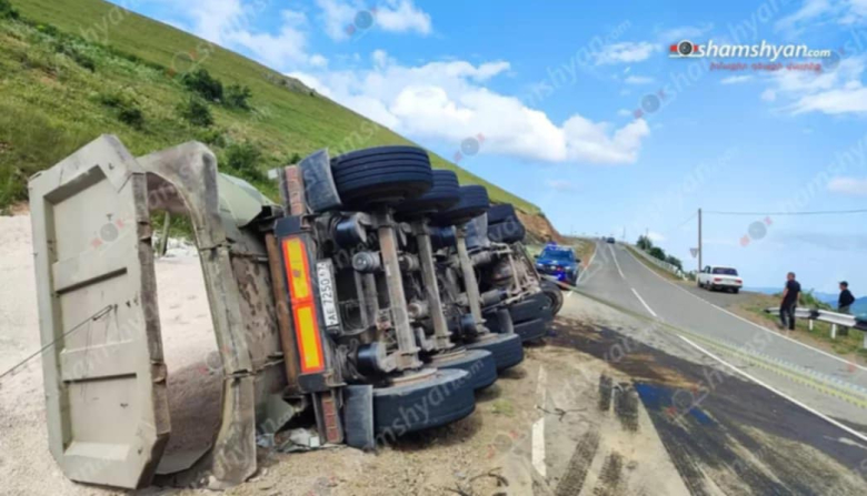 Ցեմենտ, ավազով բարձված բեռնատարը կողաշրջվել է․ կա վիրավոր
