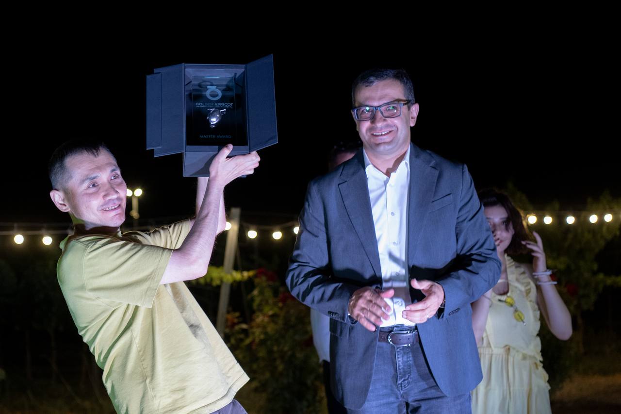 «Ոսկե ծիրան» կինոփառատոնի տնօրեն և գեղարվեստական ղեկավար Կարեն Ավետիսյանն իր խոսքում ընդգծեց՝ Aratashen Winery այցելելը փառատոնի գեղեցիկ ավանդույթներից է դարձել։ Եվ այդ գեղեցիկ ավանդույթներից մեկն է նաև մրցանակի հանձնումն այս տարածքում։ «Ամեն տարի «Ոսկե ծիրան»-ի շրջանակում մենք հանձնում ենք այս մրցանակը՝ հարգանքի տուրք մատուցելով այն վարպետներին, որոնք մեզ հետ են այստեղ։ Այս տարի մենք մրցանակը հանձնում ենք մի կինոարվեստագետի, ով հիացրել է մեզ և մենք հույս ունենք, որ այս մրցանակը կլինի մեր հետագա հարաբերությունների առհավատչյան»,-նշեց Կարեն Ավետիսյանը։