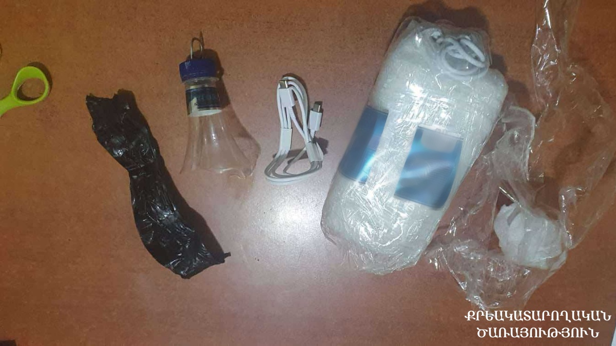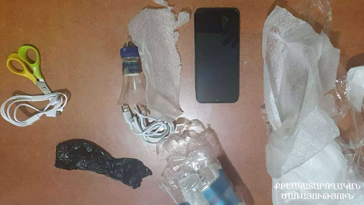 Արդյունքում՝ մասնաշենքերից մեկի հետնամասում հայտնաբերվել է մետաղյա կախիչով ամրացված պլաստմասե տարա, որը հիմնարկի տարածք ներնետվել էր անօդաչու թռչող սարքի միջոցով։ Տարայում առկա են եղել բջջային հեռախոս և 2 USB լար։
