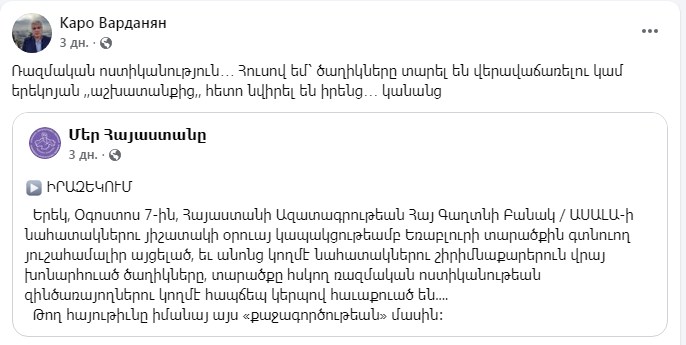 Այս խայտառակ պատմությանն ավելի կոշտ է արձագանքել գրականագետ, արվեստի վաստակավոր գործիչ ԿԱՐՈ ՎԱՐԴԱՆՅԱՆԸ: