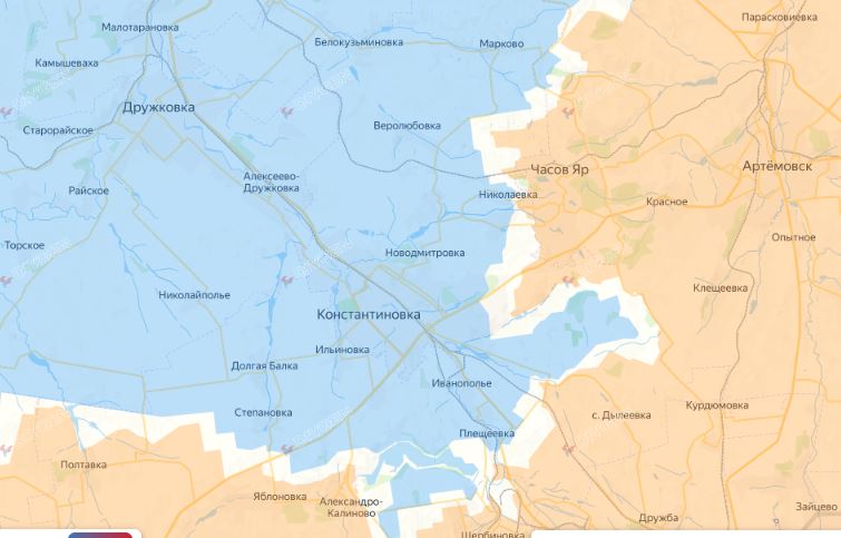 Զուգահեռանար, մի փոքր ավելի հարավ` Պրեդտեչինոյի հատվածում ռուսները նոր ճեղքում են իրականացրել` դուրս գալով Կոնստանտինովկայի վարչական սահման: