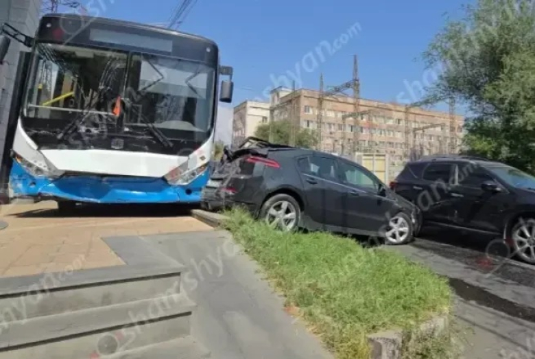 2-րդ համարի ավտոբուսը բախվել է Peugeot-ին, ապա կոտրել եզրաքարերը և բախվել Chevrolet-ին ու Nissan-ին