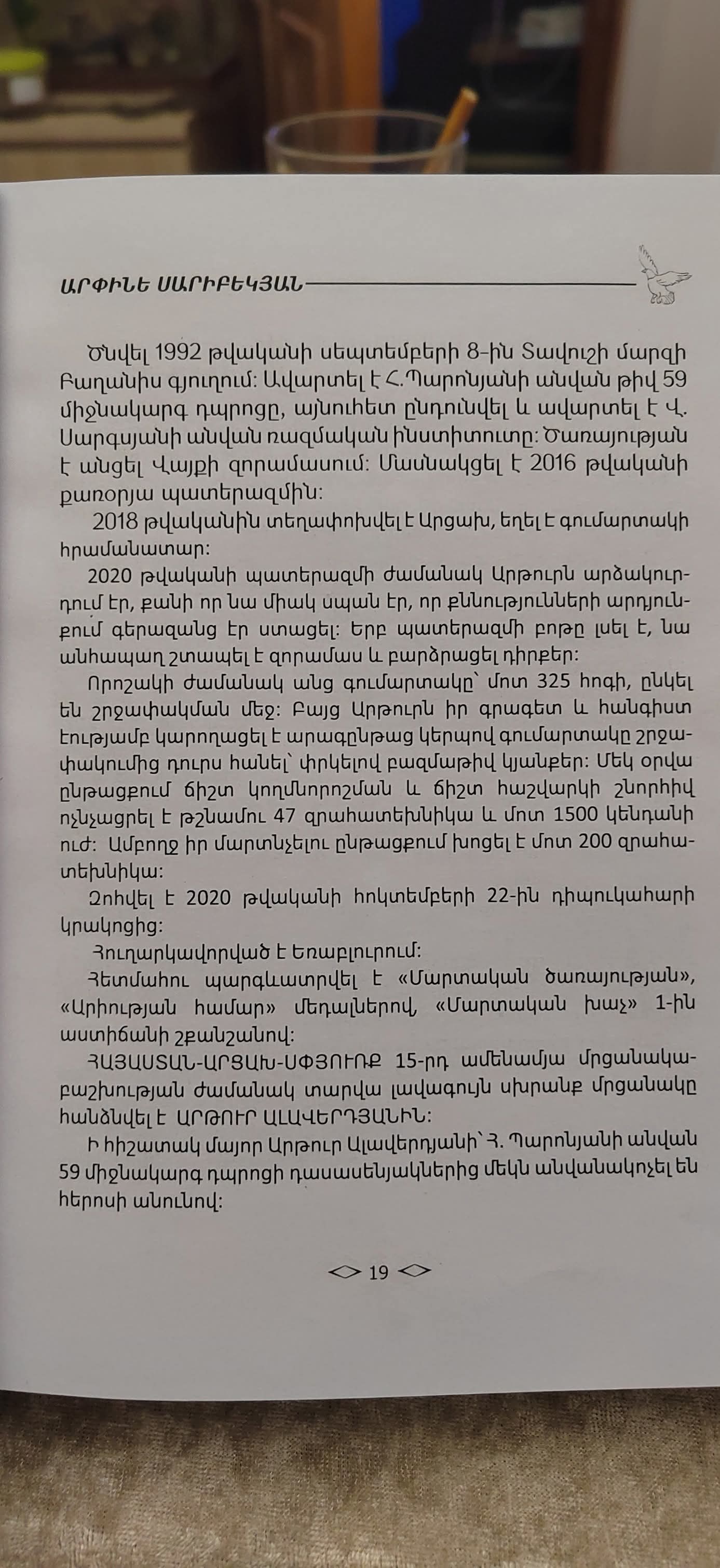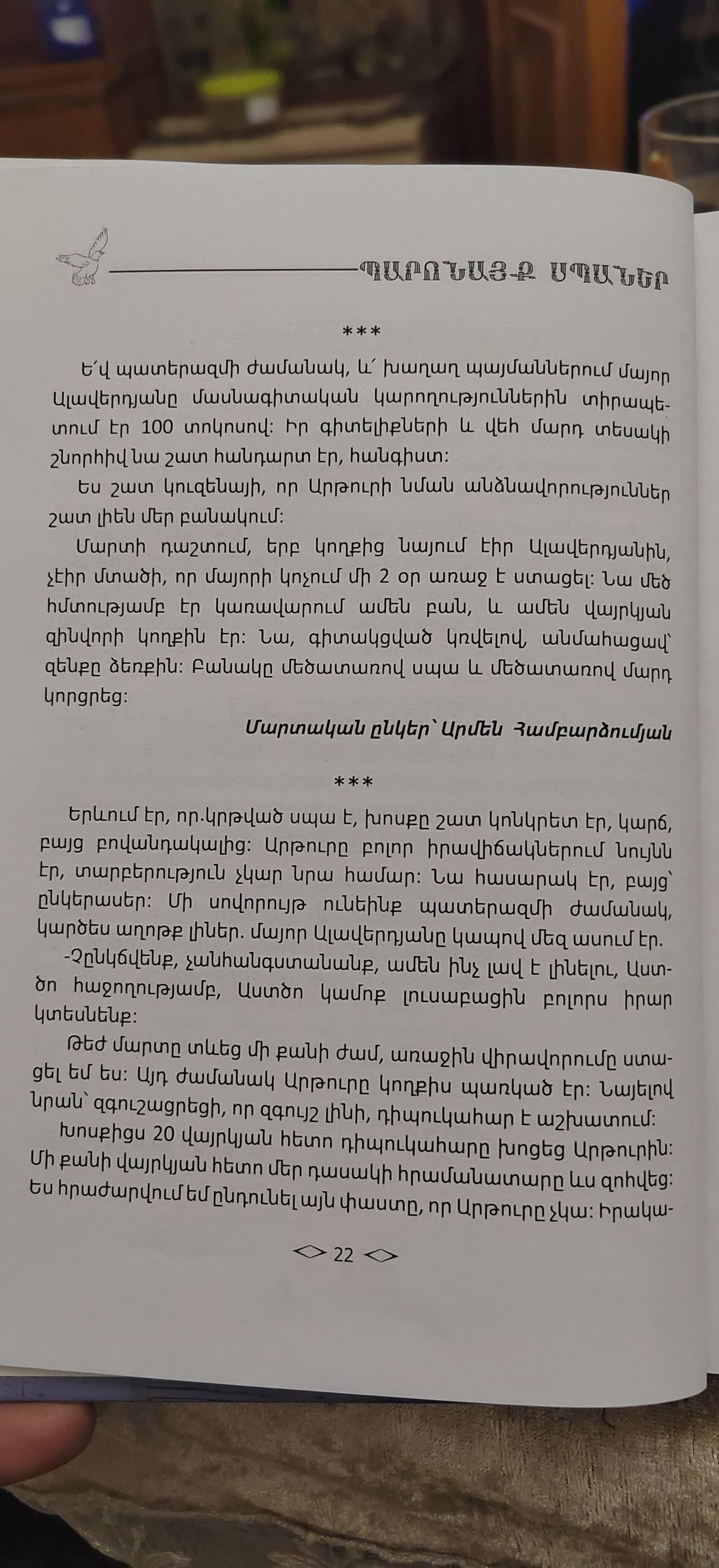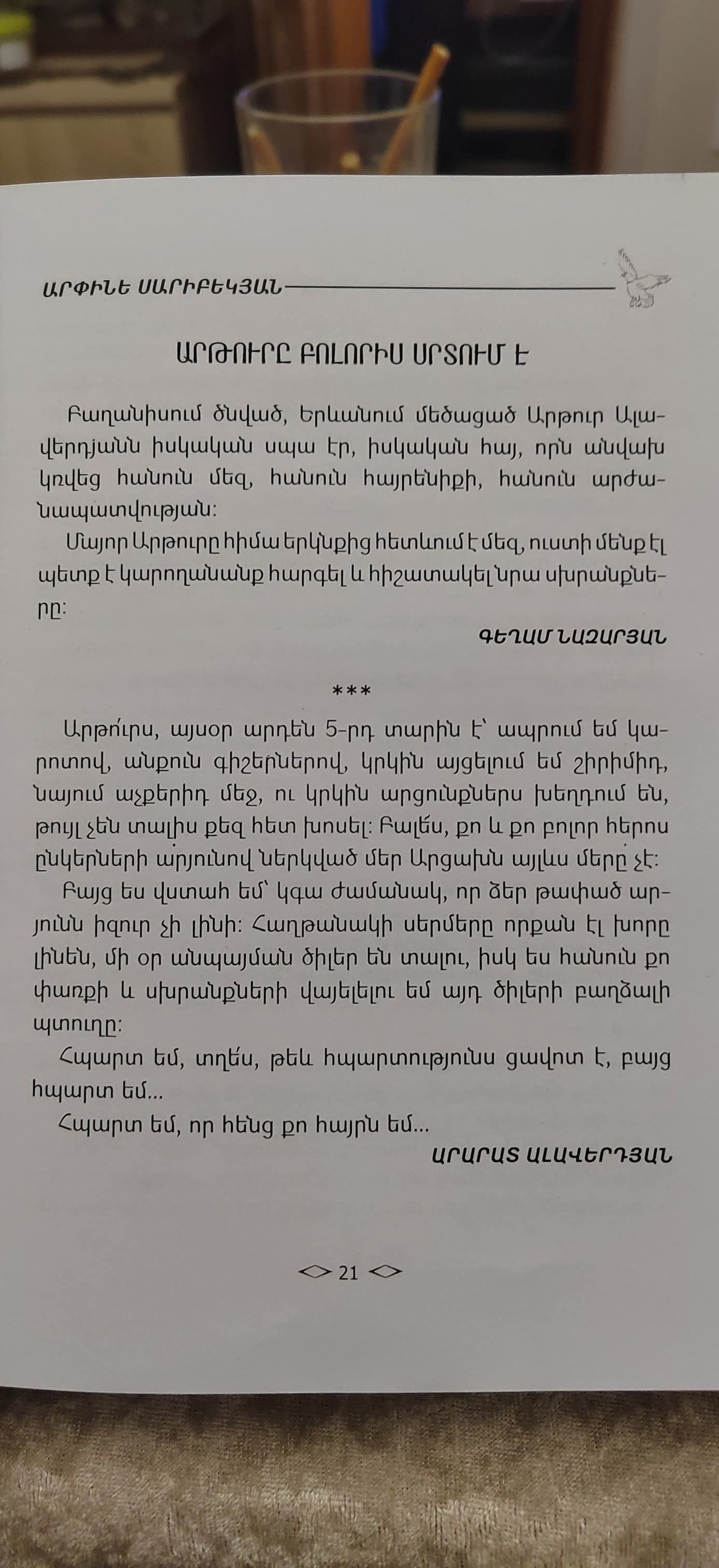 Արթուրս այսօր դարձար 33 տարեկան, շնորհավոր ծնունդ բալես, կատարած սխրանքներիտ մասին արդեն լեգենդներ են գրվում, կանգնած շիրիմիտ մոտ սիրտս քարացել է, արցունքներս խեղդում են, ներիր ինձ Արթուրս, փառք քեզ, փառք մեր բոլոր հերոս տղերքին։