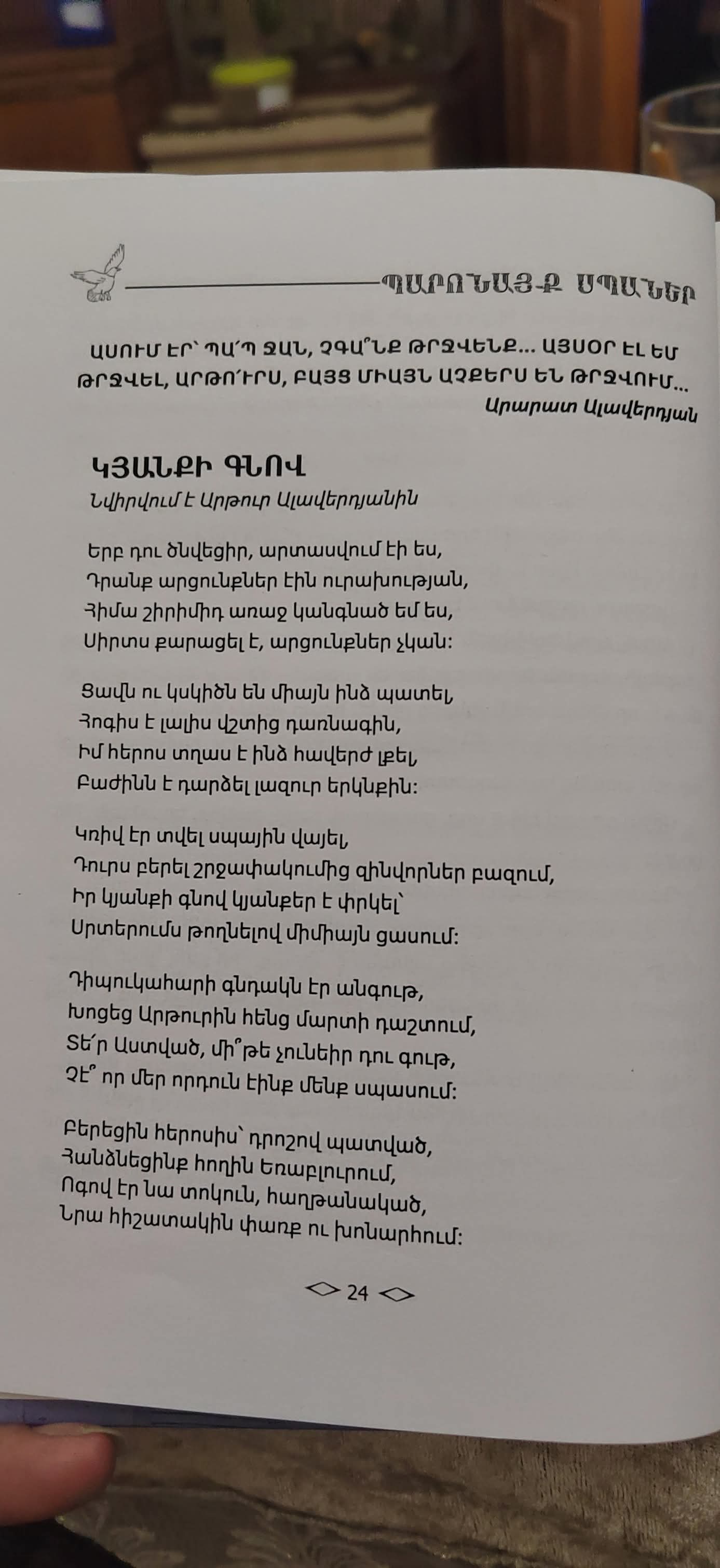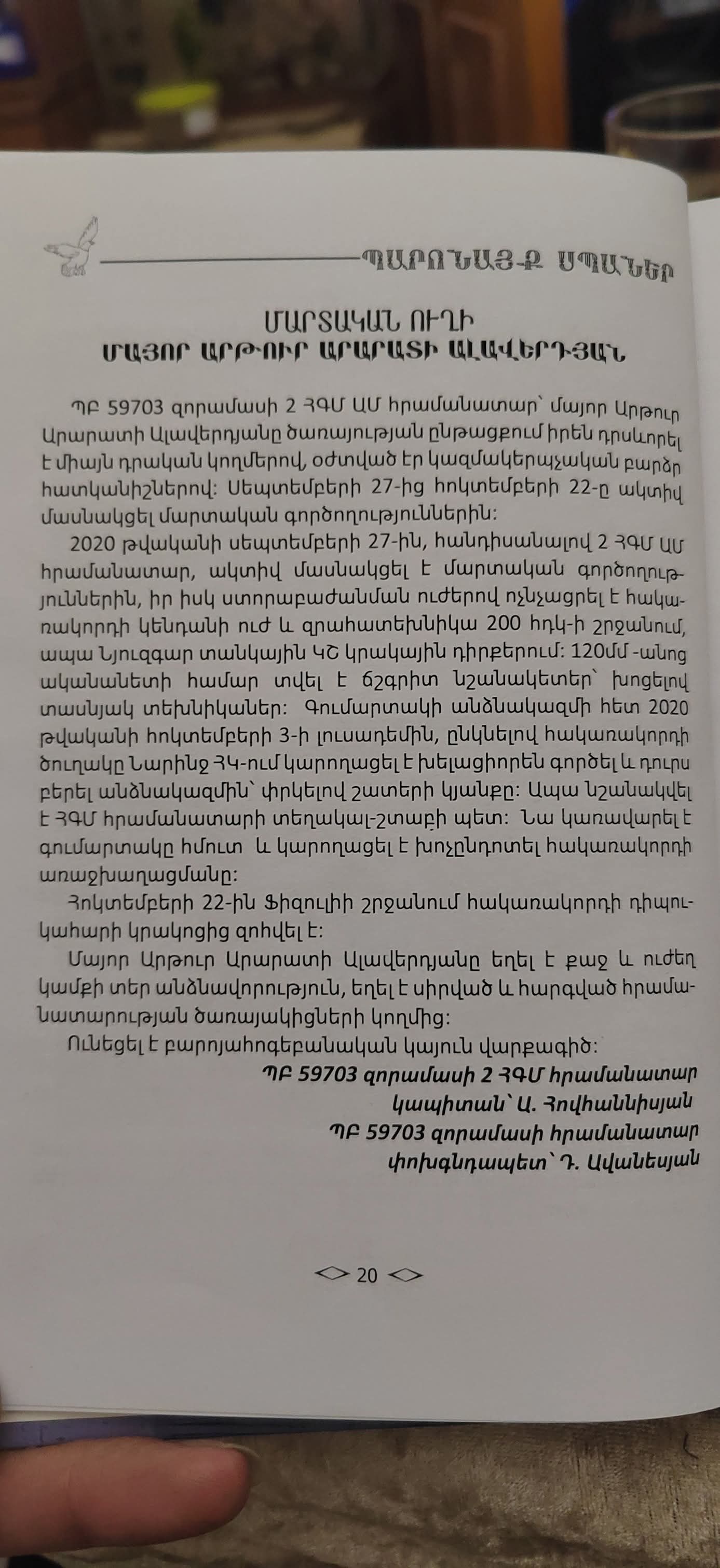 Հասարակություն44 օրյա պատերազմում հերոսավար զոհված, մայոր Արթուր Ալավերդյանի հայրը` Արարատ Ալավերդյանը գրում է.