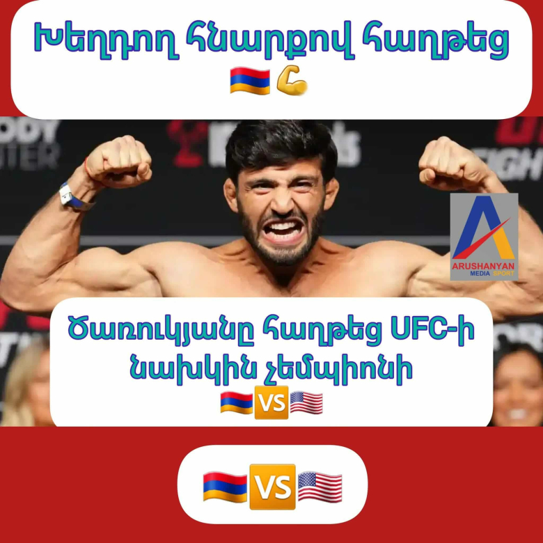 ՍպորտԽառը մենամարտերի /MMA /թեթև քաշային կարգում /մինչև 70 կգ /UFC դասակարգման երկրորդ համար, 28-ամյա ԱՐՄԱՆ ԾԱՌՈՒԿՅԱՆԸ դարձել է Բրազիլական ջիու - ջիցուի կանոններով անցկացված ACB JJ 18 մրցաշարի հաղթող։ Հայաստանի ներկայացուցիչը խեղդող հնարքով պարտության է մատնել UFC նախկին չեմպիոն 41-ամյա Բենսոն Հենդերսոնին։