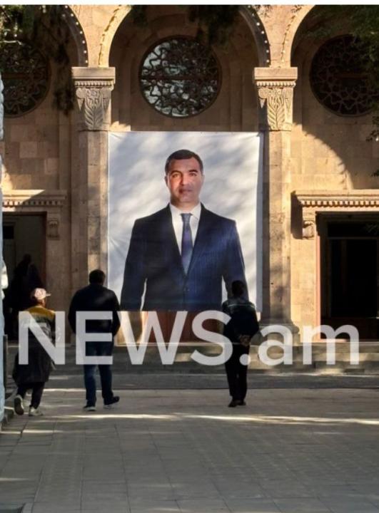 Վալոդյա Գրիգորյանի լուսանկարը փակցված է Փարաքարի մշակույթի տան վրա, իսկ կենտրոնական փողոցում սեւ ժապավեն է