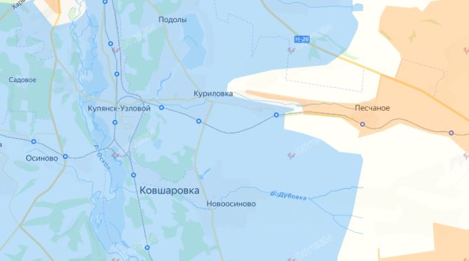 Այսքանից զատ, Կուպյանսկ-Ուզլովայայի հարավում` Օսկոլի արեւելյան ափի` Կովշերովկայի հատվածում ուկրաինական ուժերը եւս այս պահին փաստացի օպերատիվ շրջապատման մեջ են, հաշվի առնելով, որ գետով անցումները արդեն ոչնչացված են ռուսների կողմից, իսկ կառուցվող ժամանակավոր անցումներն անմիջապես խոցվում են: