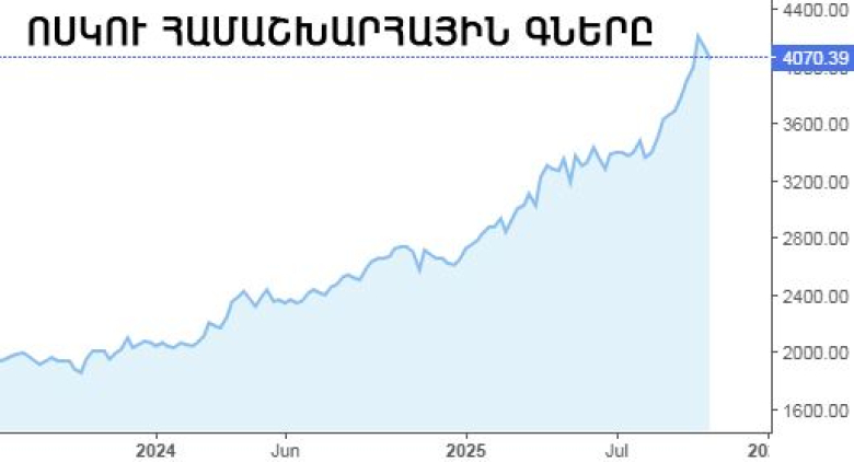 Այսպես, եթե ընդամենը մեկ տարի առաջ ոսկու մեկ ունցիայի գները տատանվում էին 2600-2700 դոլարի սահմանում, ապա ներկայումս դրանք մի պահ գերազանցեցին անգամ 4400 դոլարը, սակայն վերադառնալով եւ կայունանալով +4000 մակարդակում: Իհարկե, մինչ այս էլ՝ Բայդենի օրոք ոսկու գների տեսանելի աճ կար: Բայց այն, ինչ կատարվեց այս մեկ տարում, այն է՝ Թրամփի ընտրվելուց հետո, դուրս է ամեն մի սպասելիքից: Մոտ 50 տոկոս աճ, այն է՝ դոլարի համարժեք անկում: Ու այն, որ դոլարի ինֆլյացիան համատարած չէ, դա ընդամենը հետեւանք է, որ այն դեռ համարվում է համաշխարհային թիվ մեկ արժույթ, ու առաջին հերթին՝ որպես պահուստային միջոց: Բայց հենց դա է, որ, ըստ հիշատակված մասնագիտական աղբյուրի, իր հերթին է կտրուկ փոխվում: