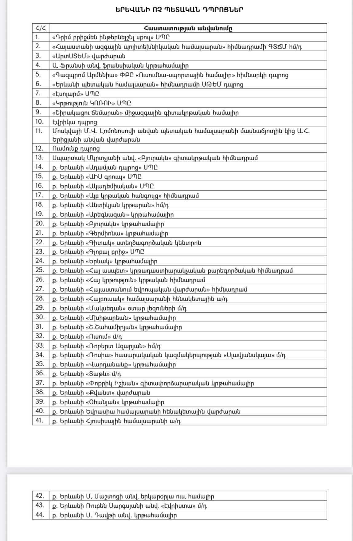 ԿԳՄՍ լրատվականից էլ խնդրել ենք այն դպրոցների ցանկը, որոնք այս պահին ընդգրկված հետվաճարի համակարագում․
