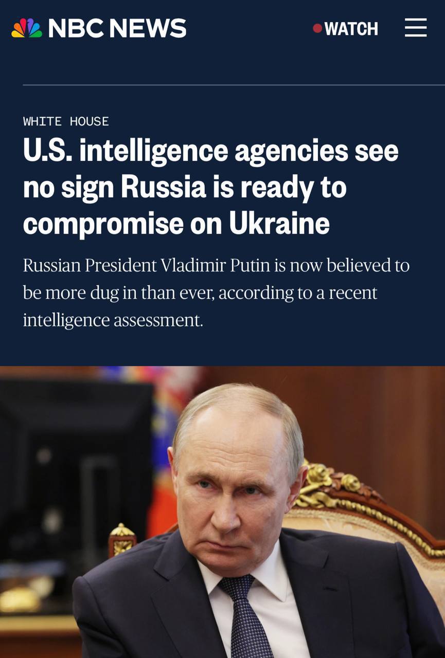 ՄիջազգայինՊուտինը ծայրահեղ կոշտ դիրքորոշում է ընդունել. Ուկրաինայի հարցում զիջում չի լինի։ Այս մասին հայտնում է NBC-ը՝ հղում անելով ԱՄՆ հետախուզական ծառայություններին: