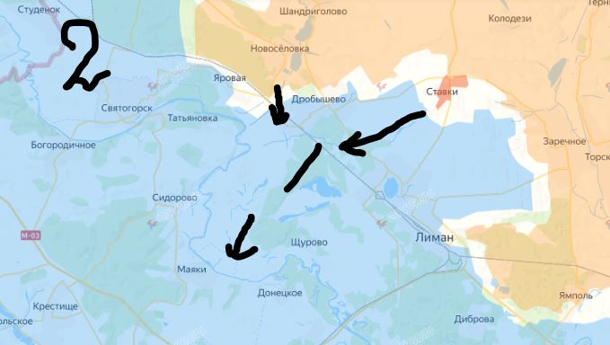 Գրեթե միաժամանակ հյուսիսային թեւում ռուսները հայտարարեցին երկու առանցքային բնակավայրերի` Ստավկիի եւ Նովոսյոլովկայի գրավման մասին (Քարտեզ 2): Այս հատվածում ուկրաինական կողմի համար հիմնական պաշտպանական հատված է մնում Դրոբիշեւոն: Սակայն ռուսները հիմա կարող են դրան հարվածել նաեւ թիկունքից` Ստավկիի ուղղությունից, որի դեպքում Դրոբիշեւոն պահելու շանսեր ուկրաինական ուժերին չի մնում: Այդ բնակավայրը գրավելու դեպքում ռուսները կարող են հարձակումը զարգացնել հարավային ուղղությամբ, որտեղ նույնպես գործնականում բնակավայրեր չկան, որոնց շուրջ ուկրաինական ուժերը կկարողանան պաշտպանություն կազմակերպել: Այս դեպքում ռւսների վերահսկողության տակ կանցնի Սեւերսկի Դոնեցի արեւելյան հատվածը տվյալ ուղղությամբ, որը, միաժամանակ, հաշվի առնելով նաեւ Յամպոլի ուղղությունից սպասվող հարձակումը, Լիմանի համար կդառնա ամբողջական շրջապատում: