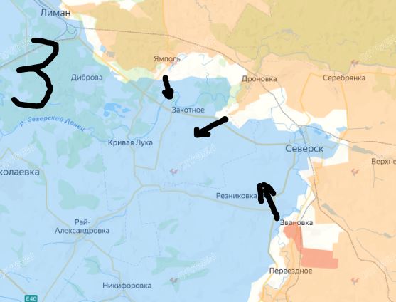 Միաժամանակ, ռուսների երեկ հայտնեցրն նաեւ Սեւերսկի հարավում հիմնական պաշտպանական կետի` Զվանովկայի գրավման մասին: Այն է` հարձակումը հիմա այստեղից եւս կարող է զարգանալ դեպի Սեւերսկի արեւմտյան թեւ` քաղաքի շրջապատումն ամբողջականացնելու համար: