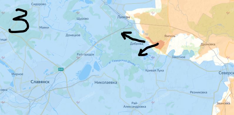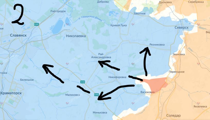 3, Պազենոյից ռուսները կարող են հարձակումը շարունակել դեպի Ինկիֆորովկա եւ Ռայ-Ալեքսանդրովկա: Վեջինը Սեւերսկի մեծ ճակատի հիմնական լոգիստիկ կենտրոնն է: Եթե ռուսներն այն գրավեն (ու դատելով Պազենոյի ուղղությամբ ճեղքման արագությունից, այս ուղղությամբ ուկրաինական պաշտպանությունը շատ թույլ է), ապա կշրջապատեն Ռայ-Ալեքսանդրովկայից արեւելք ընկած ողջ ծավալուն գոտին: