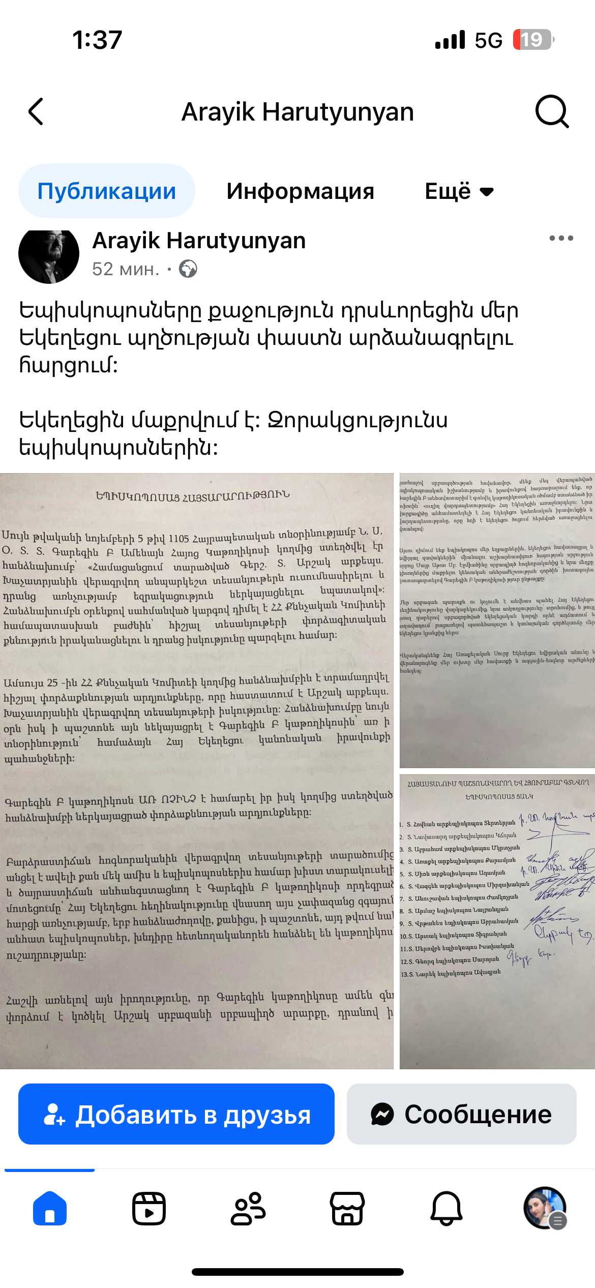 Նավասարդ Կճոյան, Վրթանես Սրբազան. Արայիկ Հարությունյանը հրապարակել է Եպիսկոպոսների անուններ. ՖՈՏՈ