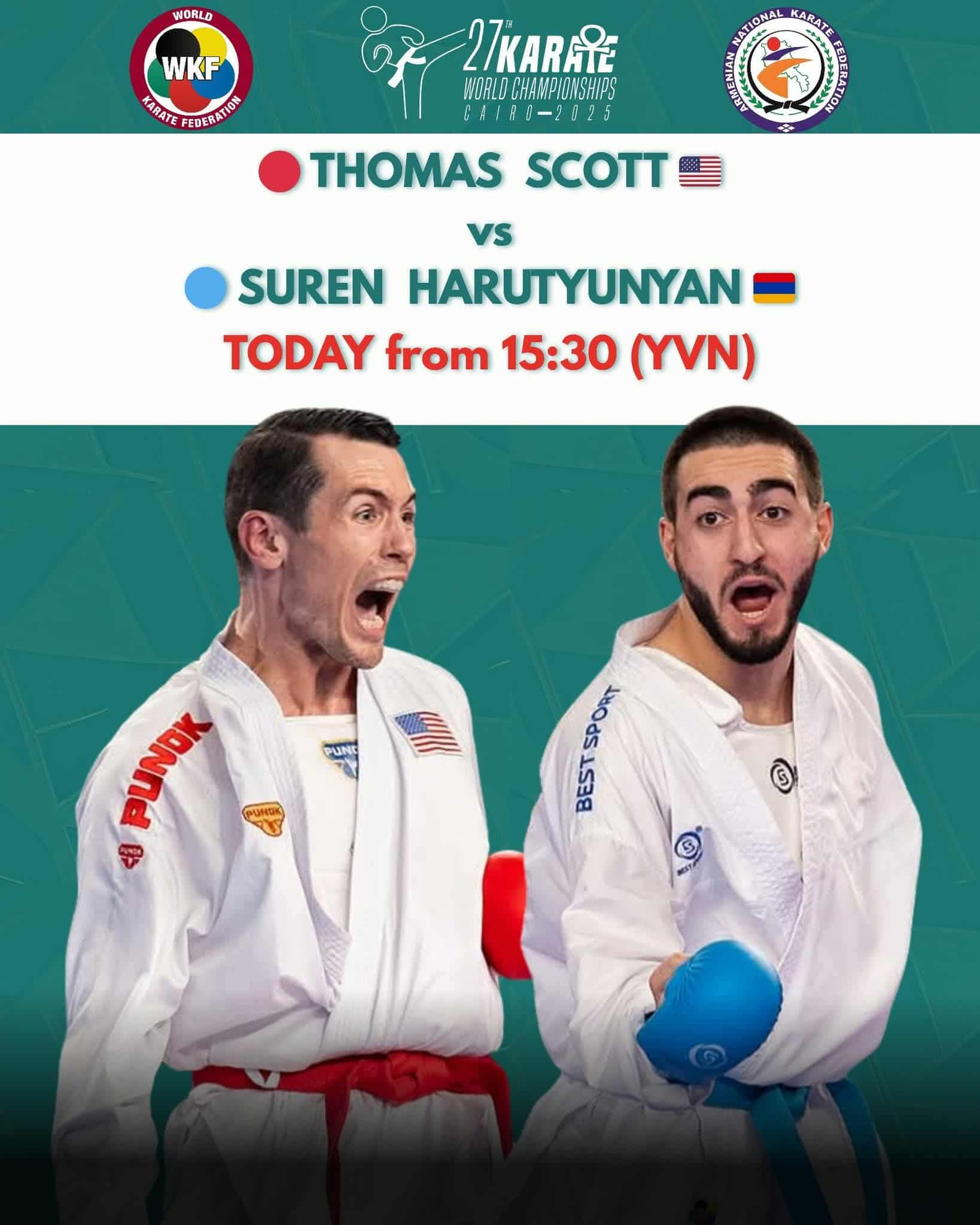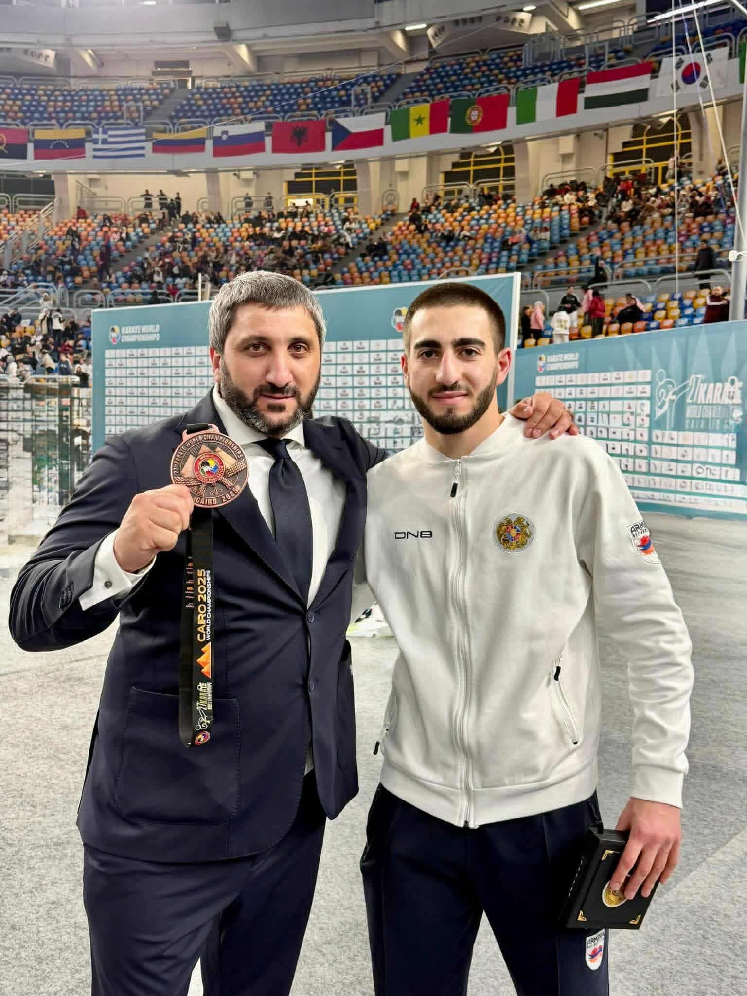 ՍպորտՆոյեմբերի 27-30-ը, Եգիպտոսի մայրաքաղաք Կահիրեում կայացած կարատեի մեծահասակների Աշխարհի առաջնությունում, Հայաստանի ազգային կարատեի հավաքականի մարզիկ ՍՈՒՐԵՆ ՀԱՐՈՒԹՅՈՒՆՅԱՆԸ - 75 կգ քաշային կարգում, եզրափակչում մենամարտելով ԱՄՆ ներկայացուցիչ Թոմաս Սքոթի հետ, հաղթել է 2։0 հաշվով ու դարձել բրոնզե մեդալակիր։ Հայ մարզիկը եզրափակիչ դուրս գալով հաղթել է Թուրքիան ներկայացնող Յուրուր Օմեր Ֆարուկին։ Հատկանշական է, որ հայկական կարատեի պատմության մեջ երբևէ նման մեծ նվաճում չէր գրանցվել, սա առաջին բրոնզե մեդալն էր Աշխարհի առաջնությունից։