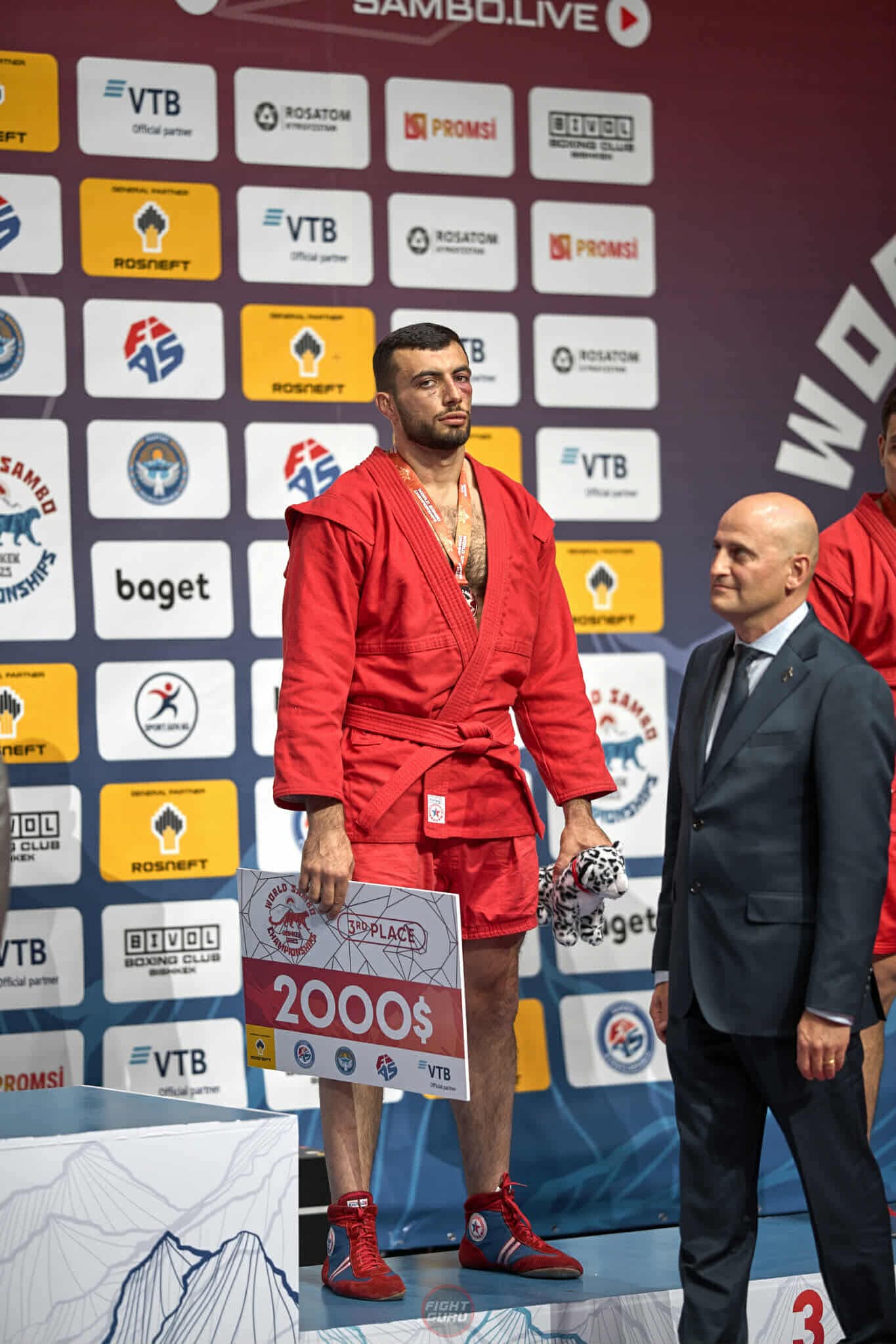 - 98 կգ քաշային կարգում եմ հանդես եկել, մարտական սամբոյի կազմում։ Ընդհանուր երեք գոտեմարտ եմ անցկացրել։ Մեկնարկում 5։0 հաշվով հաղթեցի Ղազախստանի ներկայացուցչին, հետո 7։1 հաշվով պարտության մատնեցի Մոնղոլիայի ներկայացուցչին։ Կիսաեզրափակչում 4։0 հաշվով հաղթում էի Կամերունի ներկայացուցչին, ափսոս, աչքի վնասվածք ստացա, ցանցաթաղանթի պատռվածք, նույնիսկ չէի կարողանում շնչել, ու 5։4 հաշվով այդպես զիջեցի մրցակցիս։ Երեք գոտեմարտերն էլ դժվար անցան, շատ ուժեղ էին հակառակորդներս։ Աչքս վիրահատել եմ, հիմա վերականգնողական փուլում եմ գտնվում, շուրջ 2 ամիս չեմ կարողանա մասնակցել որևէ պարապմունքի։