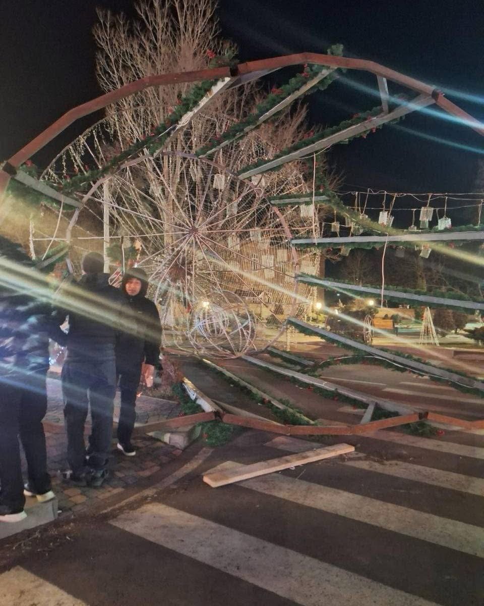 Ուժեղ քամին կոտրել ու տապալել է Ապարանի գլխավոր տոնածառը, վնասել ամանորյա զարդարանքները