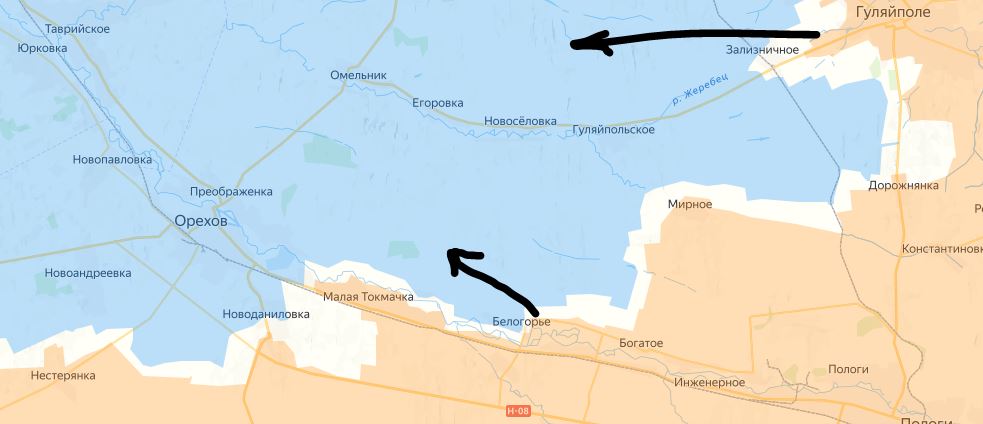 Զուգահեռաբար ընթանում է ռուսների հարձակումը Գուլյայպոլեից Օրեխովո տանող մայրուղու երկայնքով: Այդպիսով, ուկրաինական կողմի համար առաջանում է Օրեխովոյի ողջ արեւելյան թեւն աքցանավորելու վտանգ: