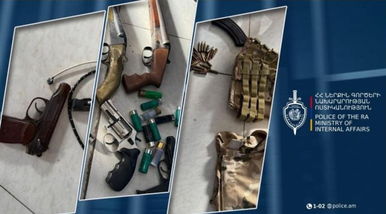 36-ամյա տղամարդու տնօրինած՝ Երևանյան փողոցի հասցեներից մեկում գտնվող սննդի կետում կատարված խուզարկությամբ հայտնաբերվել են երկու ողորկափող հրացան, 3 ատրճանակ, տարբեր զենքերի և տարբեր տրամաչափի 56 փամփուշտ, զրահաբաճկոններ և ինքնաձիգի փամփշտատուփ։