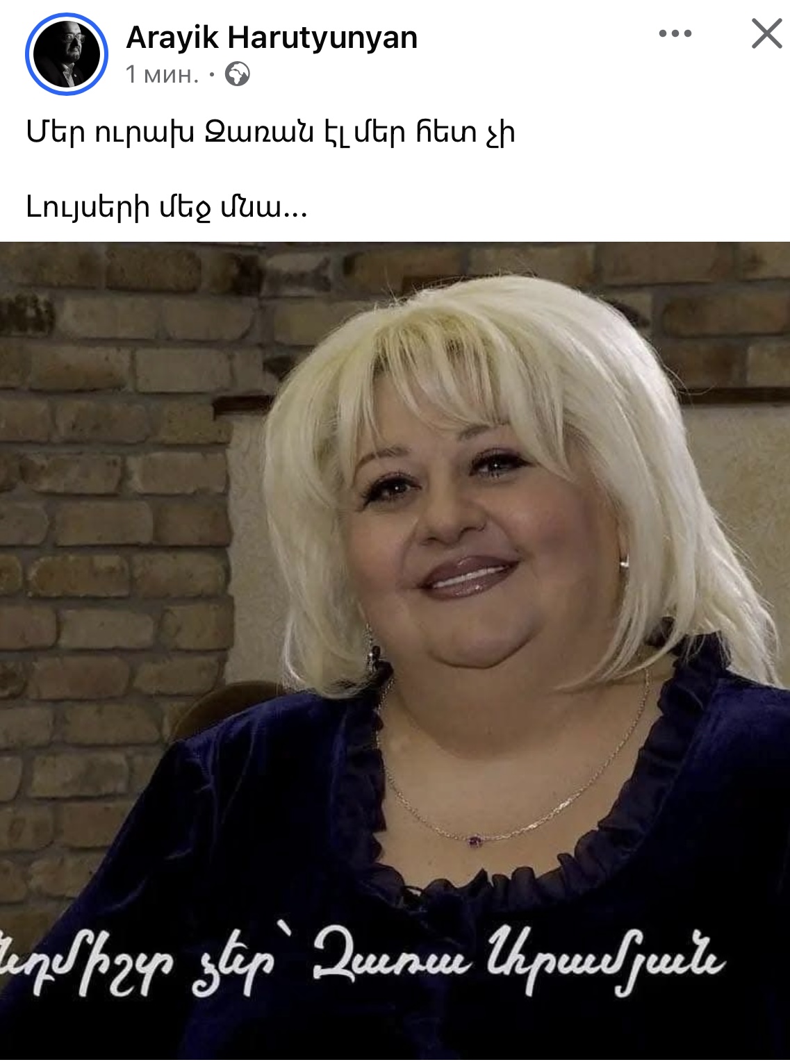 Այս ցավալի լուրը իր էջում հայտնել է Կառավարության աշխատակազմի ղեկավար Արայիկ Հարությունյանը