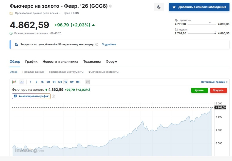 Ոսկու գները շարունակում են ռեկորդներ գրանցել։ Մեկ տրոյական ունցիայի գինը արդեն մոտենում է 4900 դոլարին։