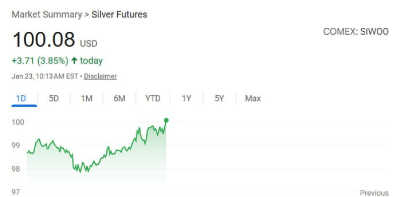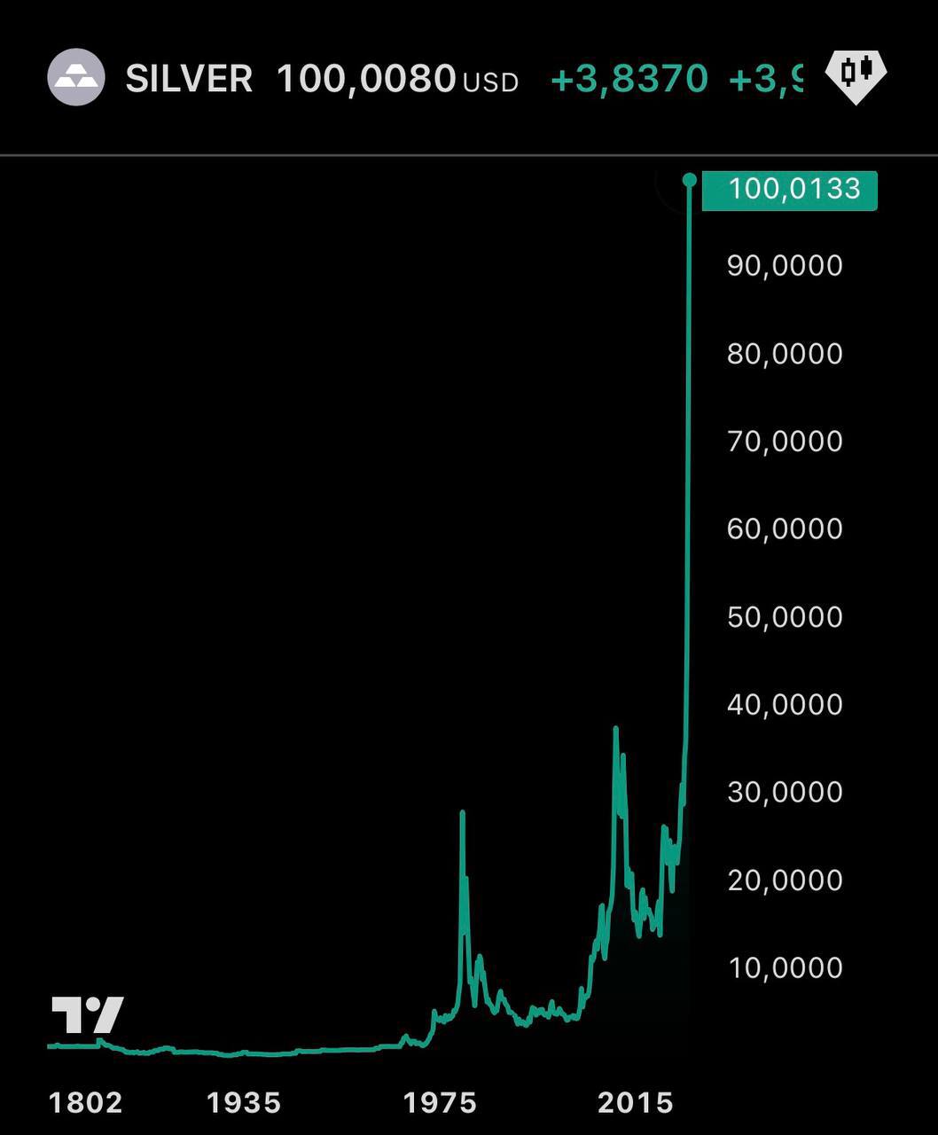Արծաթի գինը պատմության մեջ առաջին անգամ գերազանցել է 100 դոլարը