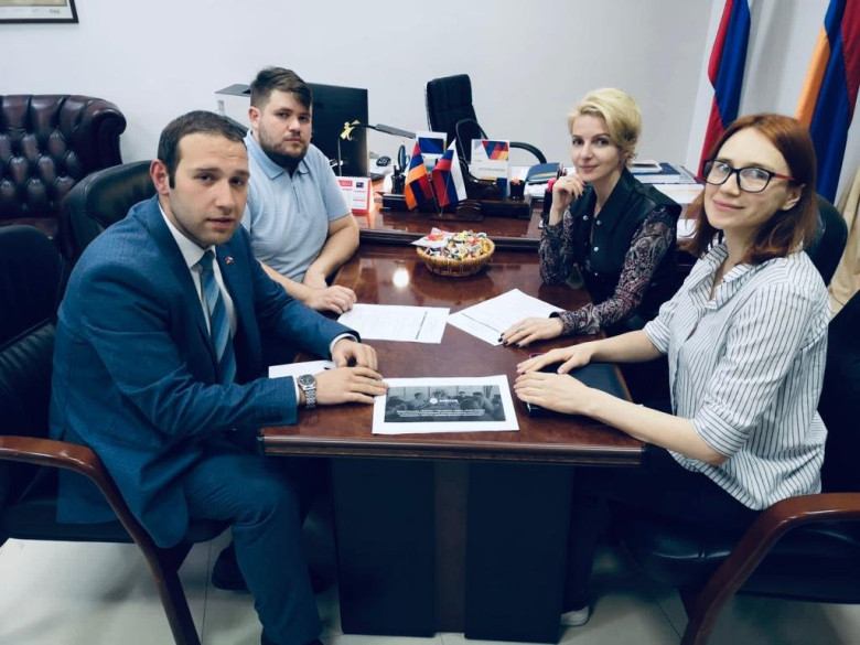ТемаТорговый представитель России в Армении Анна Донченко провела встречу с сопредседателями «Российско-Армянского Союза Молодежи» Рафаелом Погосяном и Артуром Мовсисяном.