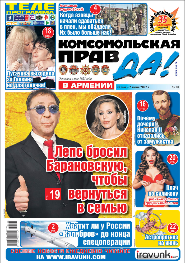 ⚡️⚡️В сегодняшнем номере «Комсомольской Правды в Армении» читайте